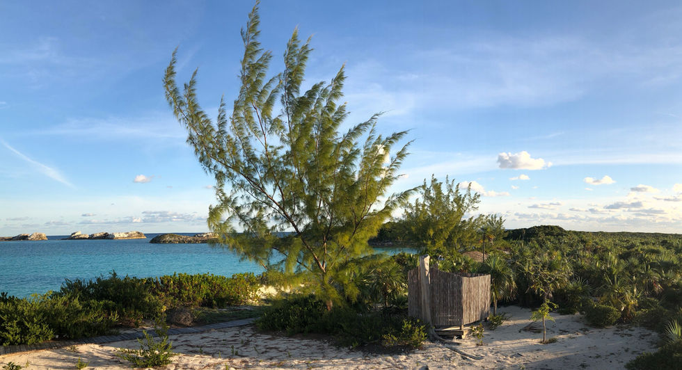 The Beach House is located directly on the water and sits above the dunes of Love Beach, a perfectly sculpted horseshoe beach that stretches 240 meters long. The house is elevated above sea level, allowing guests to enjoy 360⁰ views of the island from the wrap-around porch with nothing but a set of stairs between you and the private beach below.